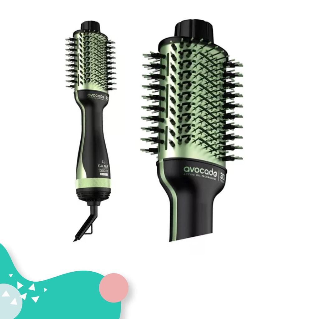 El cepillo secador con extractos de Aguacate en sus cerdas mixtas con puntas redondeadas Diseño Ovalado 3 en 1: suaviza, da forma y añade volumen Diseño ligero y ergonómico Cable giratorio con correa para colgar Punta fría