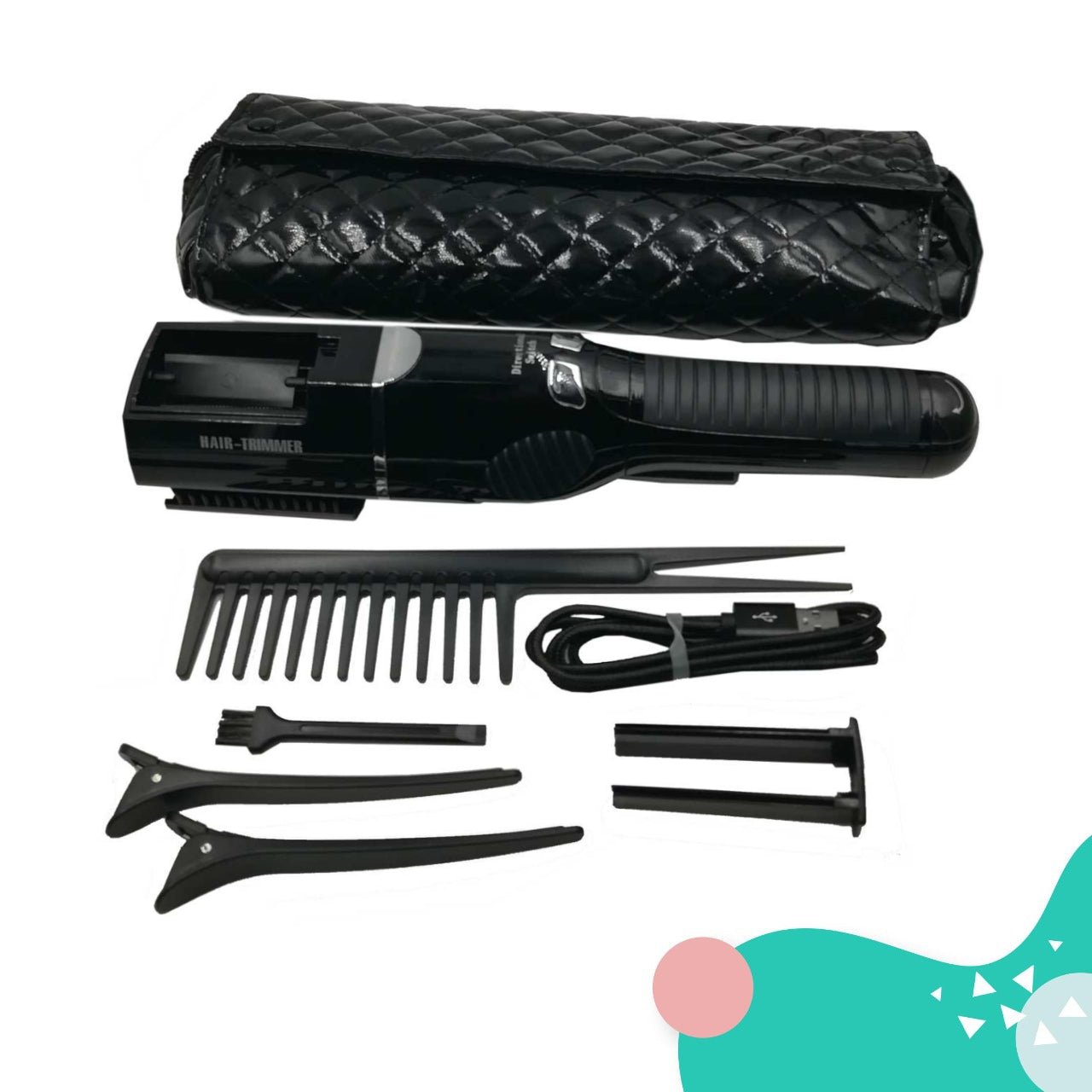 dos clips para separar el cabello y cable USB de carga.
