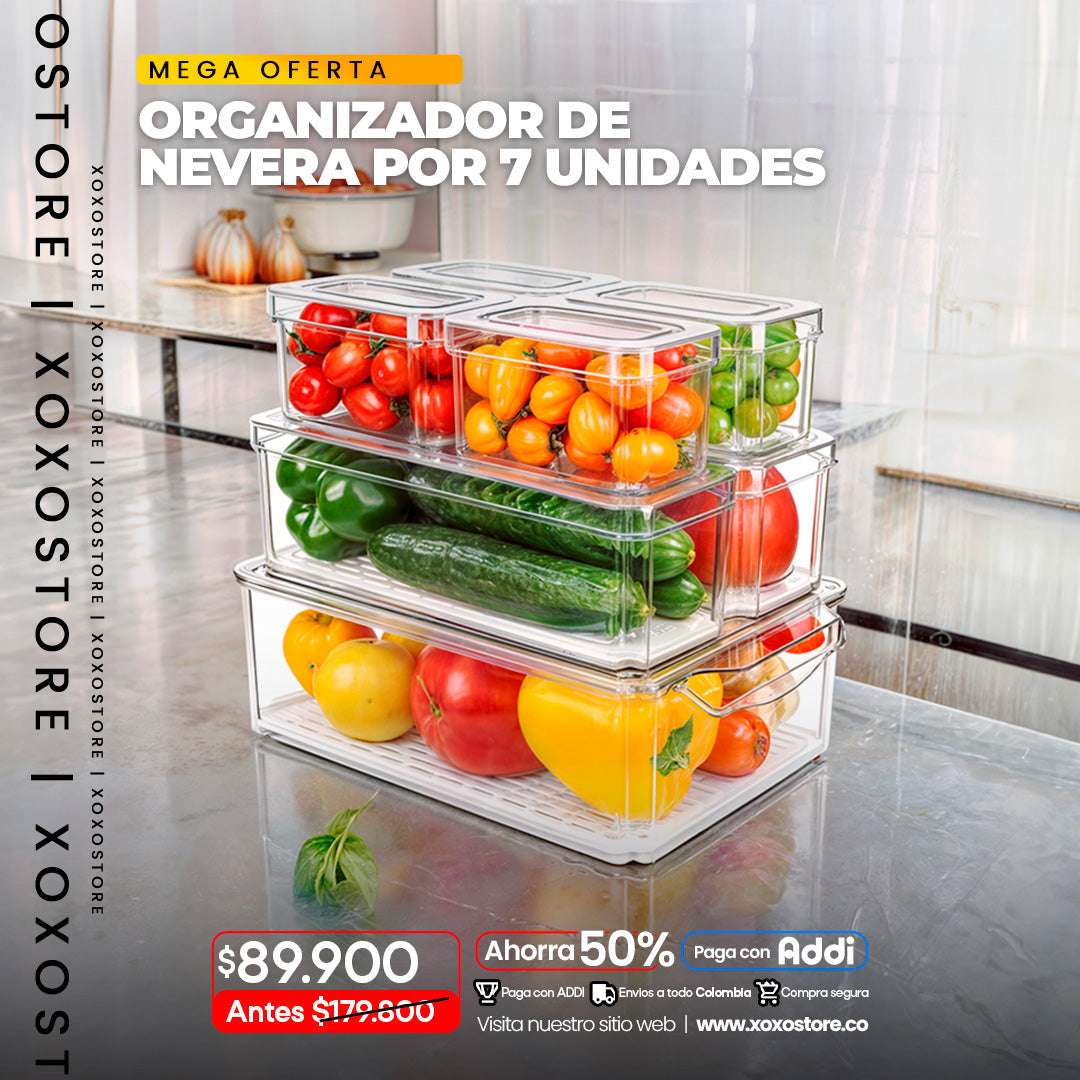 2 recipientes medianos (medidas: 27cm x 9,1cm x 8,6cm) son perfectos para almacenar pepino, tomate, cebolla...